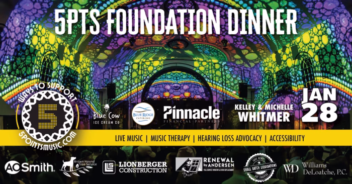 GET INSIDE THE CHURCH! Take an exclusive look inside 5 Points Music Foundation and you’ll see The Sanctuary in a whole new way! Our featured guests will be Brick Lohr, Director of The Ramble Festival, discussing accessibility in the festival environment and Steve Stinson, Director of 3 Balloons, on the role The Sanctuary has played in his work with adults managing intellectual disabilities. We’re opening up the ALL the doors early with an Open House beginning at 5:30pm. Tour the facility (including backstage and the legendary Greenroom) and meet our partners on the lower level – Anderson Music Therapy and Treble Makers Music.