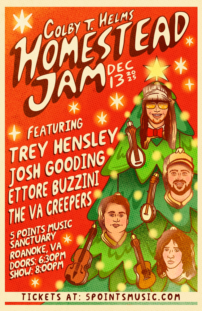 Limited edition, 11×17″ custom poster for Colby T. Helms Homestead Jam held December 13, 2025 at 5 Points Music Sanctuary. Designed by KC Marie. Available for pick-up or shipping on the day of the show. NOT A TICKET TO THE SHOW.